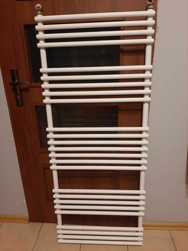 Nowy deweloperski grzejnik łazienkowy jak na zdjęciu. Wymiary 150 cm. na 60 cm.. Wysyłka OLX kurier jeżeli dopuszczą taki gabaryt lub odbiór gmina Łyszkowice, powiat łowicki.